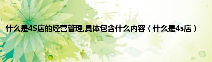 以上就是【什么是4S店的经营管理,具体包含什么内容,什么是4s店】相关内容。