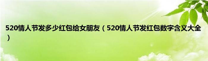 本文,520情人节发多少红包给女朋友,520情人节发红包数字含义大全到此就分享完毕,希望对大家有所帮助。