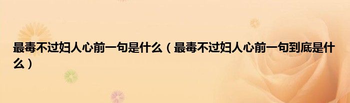 最毒不过妇人心前一句是什么(最毒不过妇人心前一句到底是什么)