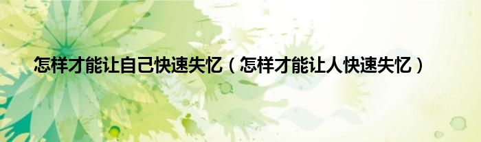 怎样才能让自己快速失忆(怎样才能让人快速失忆)