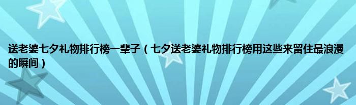 本文,送老婆七夕礼物排行榜一辈子,七夕送老婆礼物排行榜用这些来留住最浪漫的瞬间到此就分享完毕,希望对大家有所帮助。