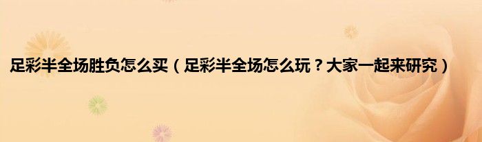 本文,足彩半全场胜负怎么买,足彩半全场怎么玩?大家一起来研究到此就分享完毕,希望对大家有所帮助。