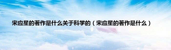 大家好,宋应星的著作是什么关于科学的,宋应星的著作是什么很多人还不知道,现在让我们一起来看看吧!