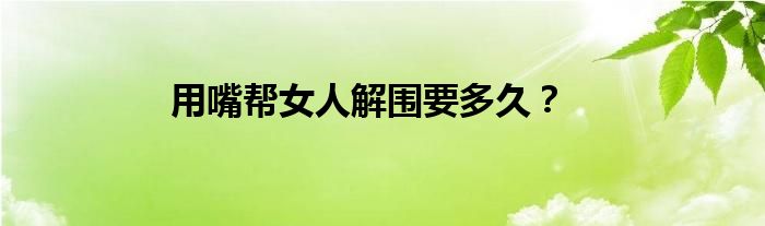 以上就是【用嘴帮女人解围要多久?】相关内容。