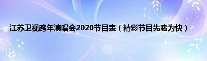 本文,江苏卫视跨年演唱会2020节目表,精彩节目先睹为快到此就分享完毕,希望对大家有所帮助。