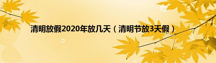 大家好,清明放假2020年放几天,清明节放3天假很多人还不知道,现在让我们一起来看看吧!