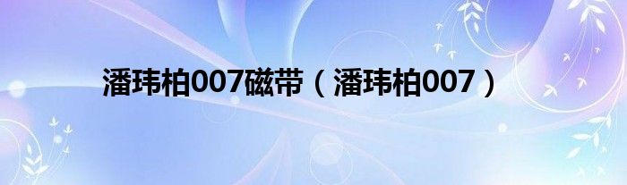 大家好,小问来为大家解答以上问题。潘玮柏007磁带,潘玮柏007这个很多人还不知道,现在让我们一起来看看吧!
