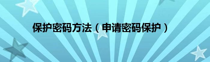 大家好,小问来为大家解答以上问题。保护密码方法,申请密码保护这个很多人还不知道,现在让我们一起来看看吧!