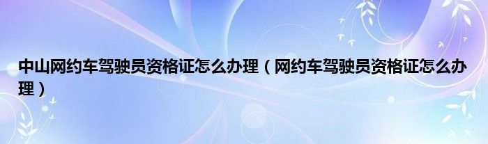 本文,中山网约车驾驶员资格证怎么办理,网约车驾驶员资格证怎么办理到此就分享完毕,希望对大家有所帮助。