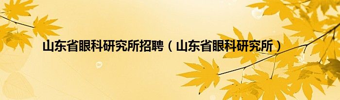 山东省眼科研究所招聘(山东省眼科研究所)