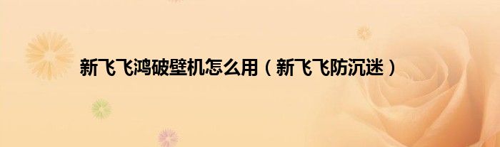 以上就是【新飞飞鸿破壁机怎么用,新飞飞防沉迷】相关内容。
