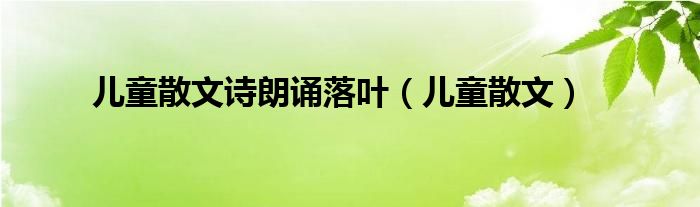 大家好,小问来为大家解答以上问题。儿童散文诗朗诵落叶,儿童散文这个很多人还不知道,现在让我们一起来看看吧!