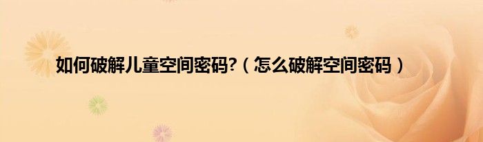 以上就是【如何破解儿童空间密码?,怎么破解空间密码】相关内容。