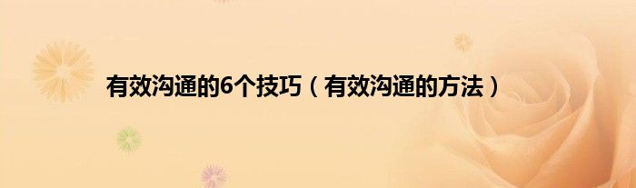 大家好,小问来为大家解答以上问题。有效沟通的6个技巧,有效沟通的方法这个很多人还不知道,现在让我们一起来看看吧!