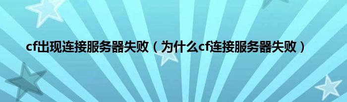 以上就是【cf出现连接服务器失败,为什么cf连接服务器失败】相关内容。