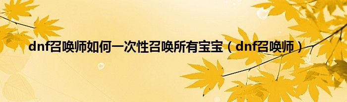 以上就是【dnf召唤师如何一次性召唤所有宝宝,dnf召唤师】相关内容。