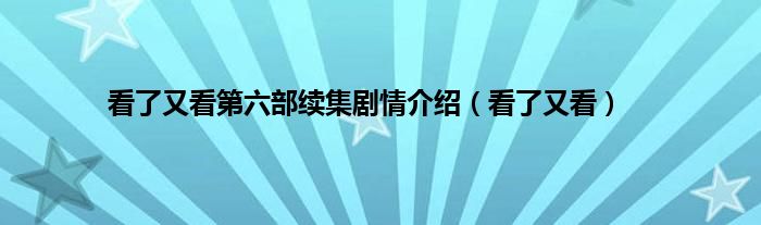 大家好,小问来为大家解答以上问题。看了又看第六部续集剧情介绍,看了又看这个很多人还不知道,现在让我们一起来看看吧!