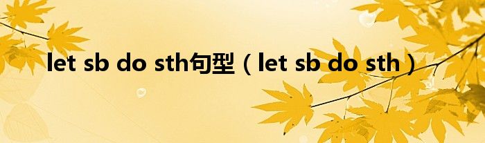 以上就是【let sb do sth句型,let sb do sth】相关内容。