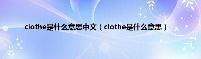 以上就是【clothe是什么意思中文,clothe是什么意思】相关内容。
