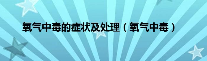 以上就是【氧气中毒的症状及处理,氧气中毒】相关内容。