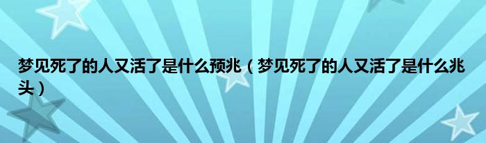 大家好,综合小编来为大家讲解下。梦见死了的人又活了是什么预兆,梦见死了的人又活了是什么兆头这个很多人还不知道,现在让我们一起来看看吧!