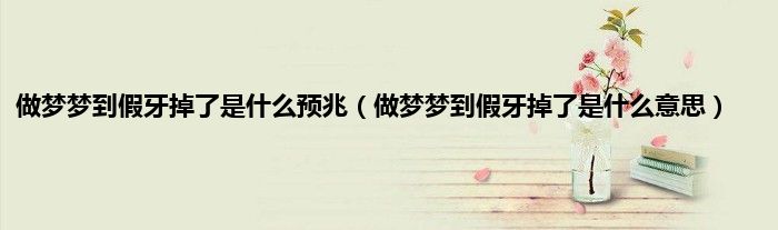 一、做梦梦到假牙掉了的梦境解析: 梦到假牙掉了,预示近期需要注意人际关系的处理,令人厌恶反感的事不要去做、不要去说。