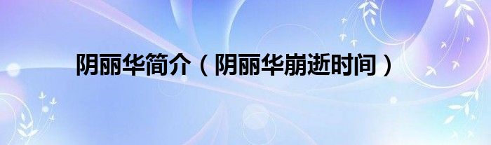 本文,阴丽华简介,阴丽华崩逝时间到此就分享完毕,希望对大家有所帮助。