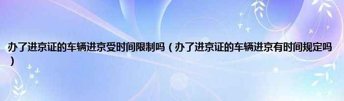 本文,办了进京证的车辆进京受时间限制吗,办了进京证的车辆进京有时间规定吗到此就分享完毕,希望对大家有所帮助。