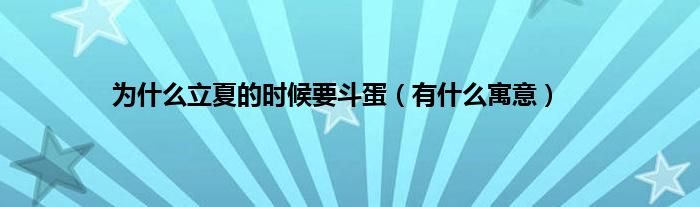 大家好,综合小编来为大家讲解下。为什么立夏的时候要斗蛋,有什么寓意这个很多人还不知道,现在让我们一起来看看吧!