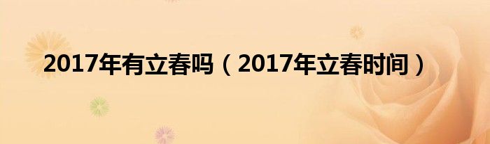 大家好,综合小编来为大家讲解下。2017年有立春吗,2017年立春时间这个很多人还不知道,现在让我们一起来看看吧!