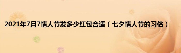 大家好,综合小编来为大家讲解下。2021年7月7情人节发多少红包合适,七夕情人节的习俗这个很多人还不知道,现在让我们一起来看看吧!