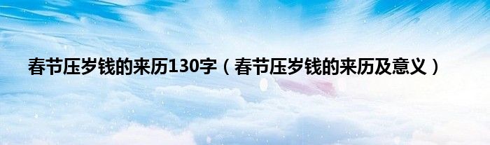 本文春节压岁钱的来历130字,春节压岁钱的来历及意义到此分享完毕,希望对大家有所帮助。