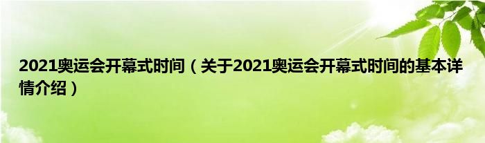 本文关于2021奥运会开幕式时间的基本详情介绍就讲解完毕,希望对大家有所帮助。