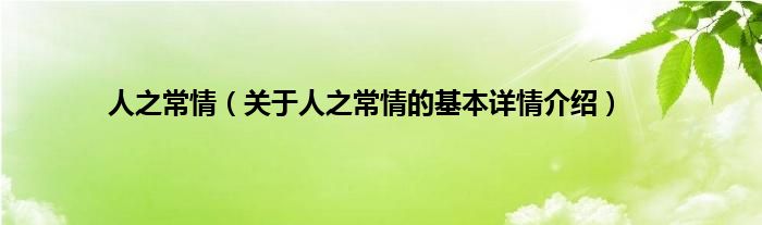 本文关于人之常情的基本详情介绍就讲解完毕,希望对大家有所帮助。
