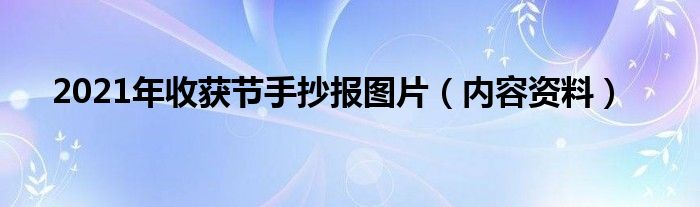 大家好,综合小编来为大家讲解下。2021年收获节手抄报图片,内容资料这个很多人还不知道,现在让我们一起来看看吧!