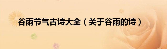 本文谷雨节气古诗大全,关于谷雨的诗到此分享完毕,希望对大家有所帮助。