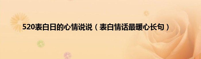 大家好,综合小编来为大家讲解下。520表白日的心情说说,表白情话最暖心长句这个很多人还不知道,现在让我们一起来看看吧!