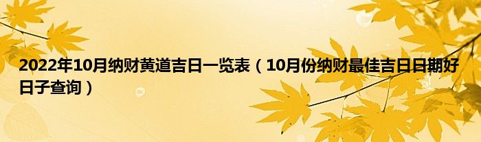 大家好,综合小编来为大家讲解下。2022年10月纳财黄道吉日一览表,10月份纳财最佳吉日日期好日子查询这个很多人还不知道,现在让我们一起来看看吧!