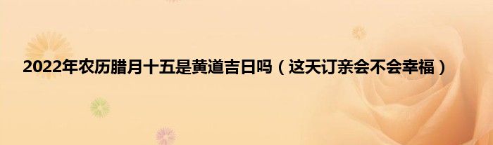 大家好,综合小编来为大家讲解下。2022年农历腊月十五是黄道吉日吗,这天订亲会不会幸福这个很多人还不知道,现在让我们一起来看看吧!