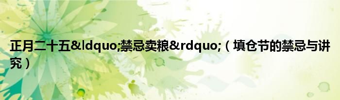 本文正月二十五“禁忌卖粮”,填仓节的禁忌与讲究到此分享完毕,希望对大家有所帮助。