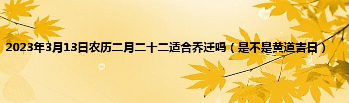 大家好,综合小编来为大家讲解下。2023年3月13日农历二月二十二适合乔迁吗,是不是黄道吉日这个很多人还不知道,现在让我们一起来看看吧!