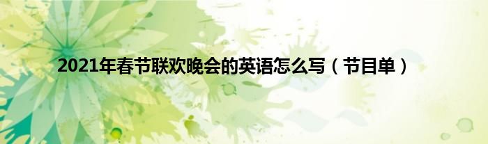 本文2021年春节联欢晚会的英语怎么写,节目单到此分享完毕,希望对大家有所帮助。