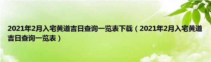 大家好,综合小编来为大家讲解下。2021年2月入宅黄道吉日查询一览表下载,2021年2月入宅黄道吉日查询一览表这个很多人还不知道,现在让我们一起来看看吧!