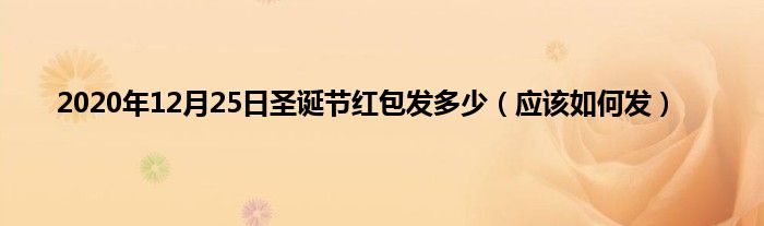 大家好,综合小编来为大家讲解下。2020年12月25日圣诞节红包发多少,应该如何发这个很多人还不知道,现在让我们一起来看看吧!