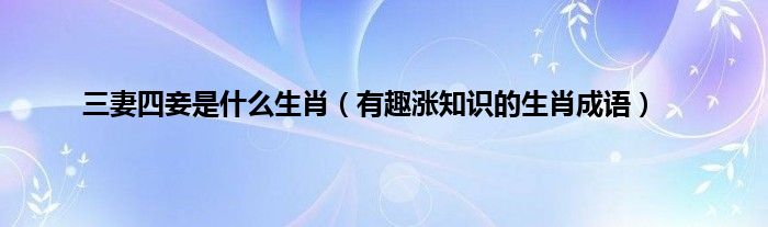 大家好,综合小编来为大家讲解下。三妻四妾是什么生肖,有趣涨知识的生肖成语这个很多人还不知道,现在让我们一起来看看吧!