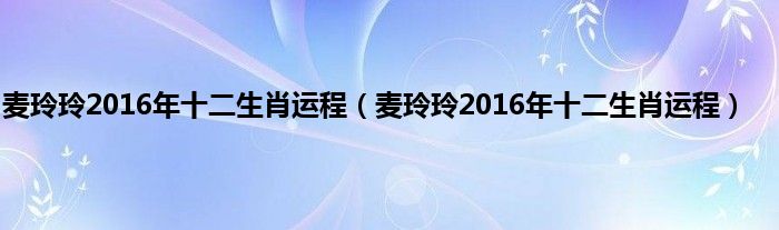 麦玲玲2016年十二生肖运程(麦玲玲2016年十二生肖运程)