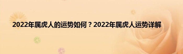 大家好,综合小编来为大家讲解下。2022年属虎人的运势如何?2022年属虎人运势详解这个很多人还不知道,现在让我们一起来看看吧!
