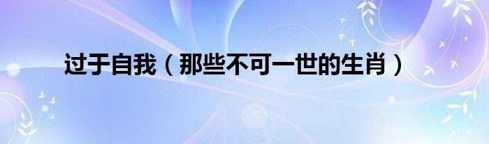 大家好,综合小编来为大家讲解下。过于自我,那些不可一世的生肖这个很多人还不知道,现在让我们一起来看看吧!