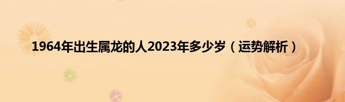 大家好,综合小编来为大家讲解下。1964年出生属龙的人2023年多少岁,运势解析这个很多人还不知道,现在让我们一起来看看吧!