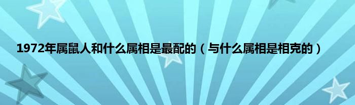 一、 1972年属鼠人和什么属相是最配的: 从生肖属相这方面来看的话,1972年属鼠的人他们和属龙、属猴、属牛这三个属相是大吉婚配,心心相印,富贵幸福,万事易成功,享福终身。其他属相次之。因此1972年属鼠的人与属牛人,属龙人,属猴人不管是做朋友,亲人,还是夫妻,彼此之间从来不会发生大的计较,彼此理解,相互宽容,是知己,是朋友,是亲人,这几种关系相互交叉有相互渗透,让他们的关系坚不可摧,所以如果有遇见的话,肯定要好好的珍惜这些关系。